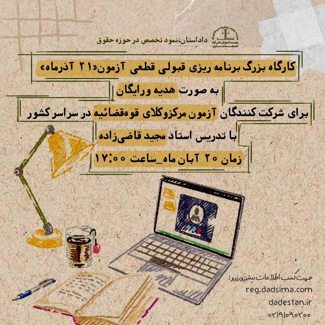 این برنامه به صورت (هدیه و رایگان) باتدریس استاد مجید قاضی زاده، ویژه داوطلبان و حقوقدانان آمادگی آزمون های حقوقی